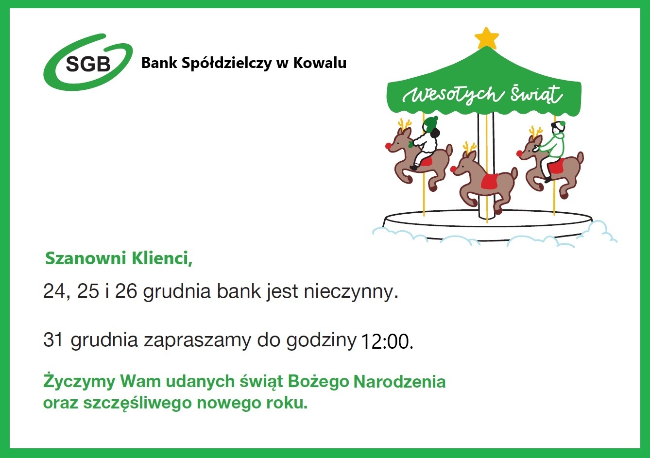 24, 25 i 26 grudnia 2025 r. bank jest nieczynny.
